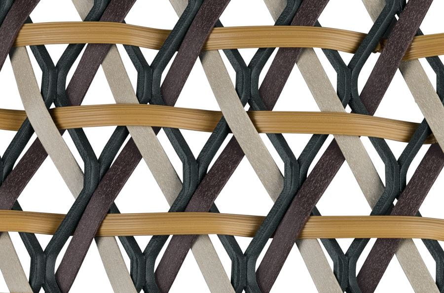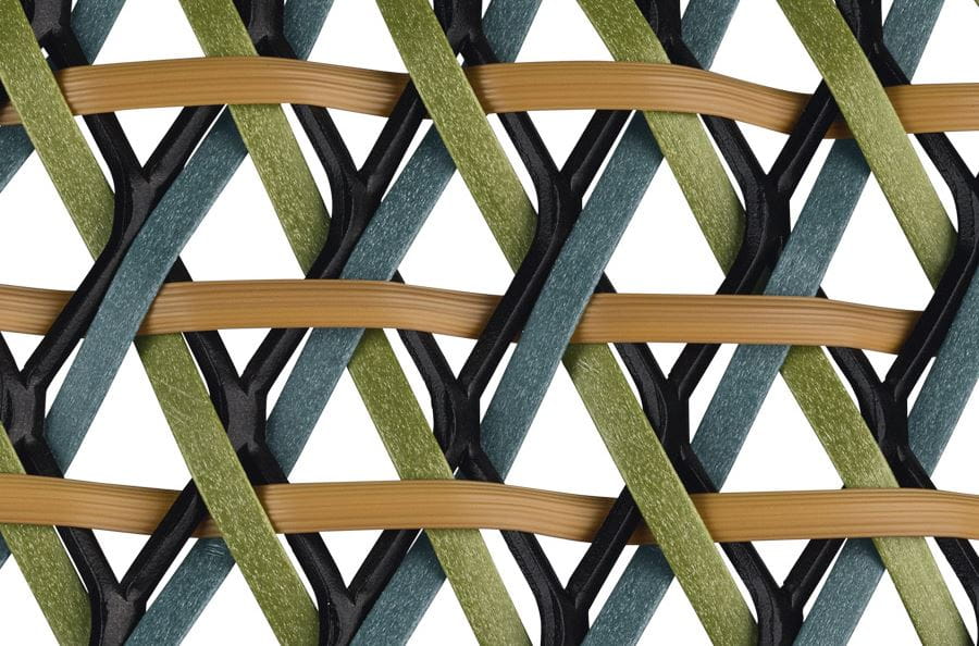 DALAs Quellen der Inspiration sind das Kunsthandwerk und die improvisierten Arrangements der Sitzmöglichkeiten aus den Entwicklungsländern. Oberfläche und Struktur verschmelzen bei dieser vielseitigen Kollektion von Stephen Burks, bei der jedes Stück mit einem pulverbeschichteten Rahmen aus Aluminium-Streckmetall beginnt, in den DEDONs Meisterflechter die farbenfrohen Stränge unserer revolutionären Faser fädeln.