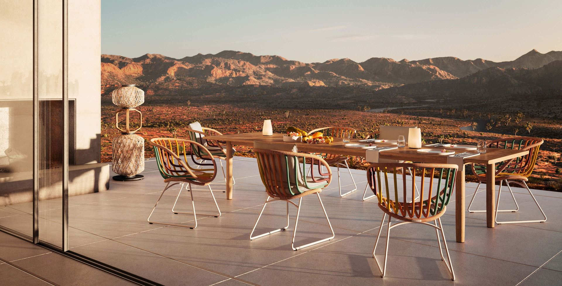 Mit seinem organisch geformten Rahmen aus pulverbeschichtetem Aluminium ist KIDA leicht und dennoch außergewöhnlich stabil. Umhüllt von der innovativen DEDON Fiber Touch, die eine besonders weiche Haptik aufweist, wird die Kollektion in drei gestreiften Farbvarianten angeboten, darunter das lebhafte, mehrfarbige Glow Touch. Stephen Burks über die Farbpalette: „Als ich sah, wie raffiniert die neuen Farbentwicklungen von DEDON sind und wie erfolgreich sie die gesamte DEDON-Kollektion miteinander verbinden, ergriff ich die Chance, so viel von der neuen Palette in mein neues Projekt zu integrieren wie möglich. Die Logik in diesem Design ist die Umwicklung des graphischen Rahmens, die Farbgebung geschah eher zufällig.“ KIDA verfügt über ein extraweiches Sitz- und Rückenkissen, das perfekt zum Liegen und Entspannen positioniert ist.