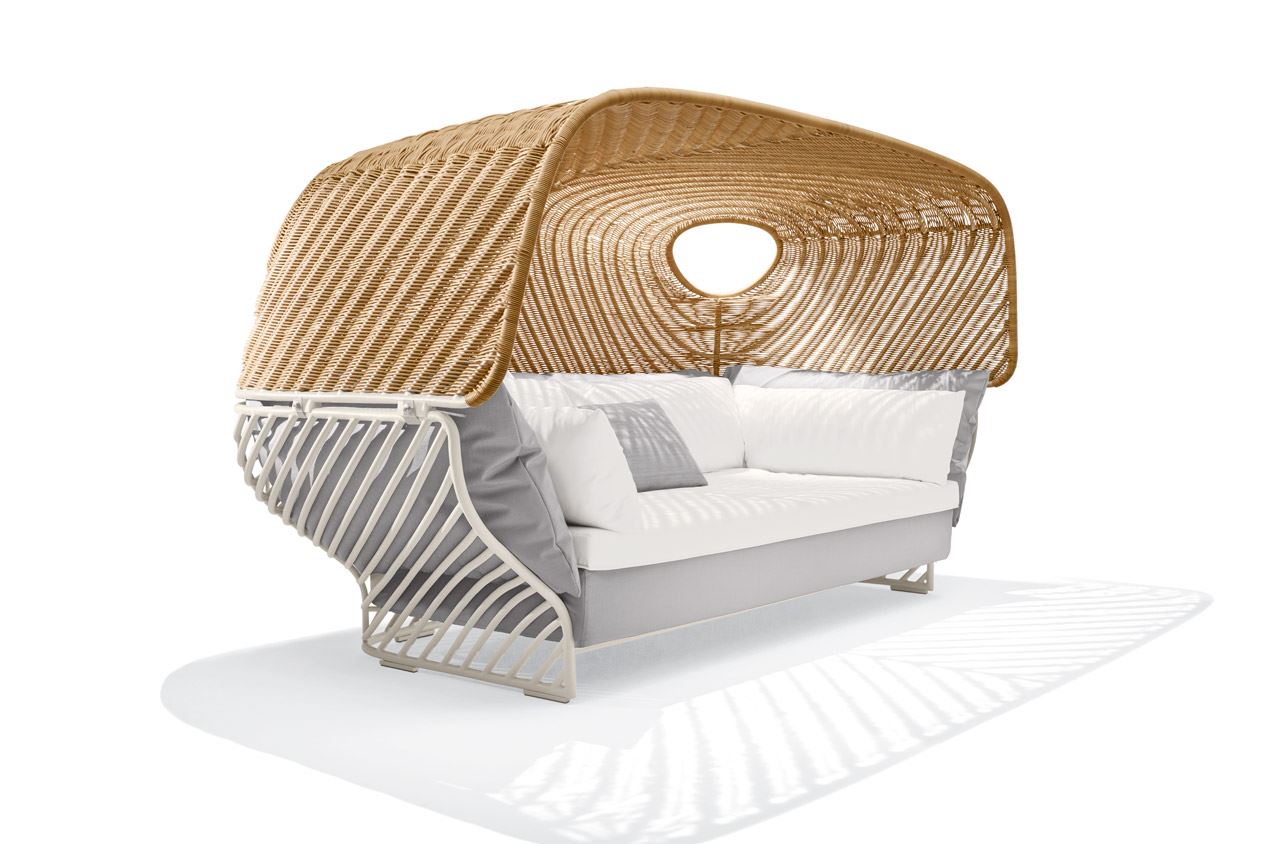 In seinem Konzept verschmelzen Sofa und Rückzugsort zu einem neuen ästhetischen und außerordentlich komfortablen Liegemöbel. Wie noch nie zuvor bringt TIGMI Menschen draußen zusammen.