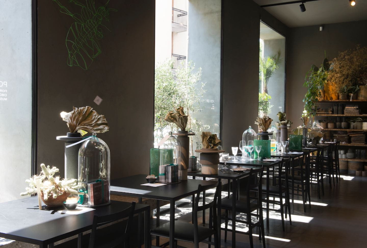 Blumen und Cocktails. POTAFIORI – Blumenshop und Restaurant-Café – das Interieur ein spannender Mix unterschiedlichster Materialien wie Holz und Metall, warmen und kühlen Farben, und dazu die leckersten Cappuccinos und Cocktails. DEDON spielt das Thema Materialmix in der neuen exklusiven Kollektion TIBBO von Edward Barber und Jay Osgerby.