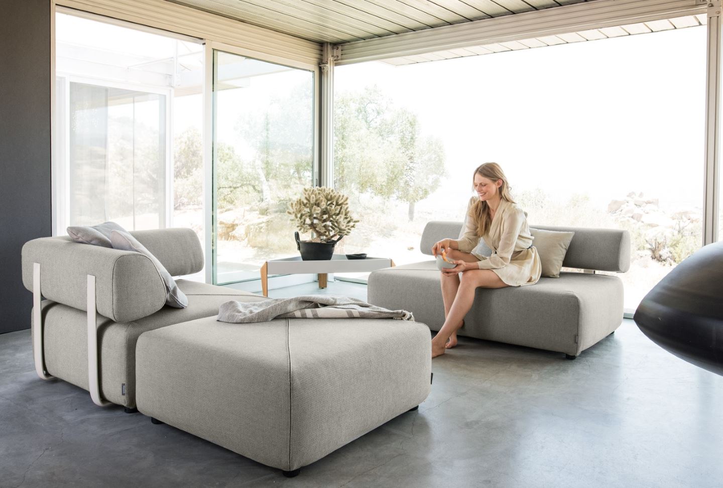 Erleben Sie das Neueste aus der DEDON-Welt, wie etwa die Lounge-Möbel aus der TIBBO-Serie von Edward Barber & Jay Osgerby, die MBRACE-Essmöbel von Sebastian Herkner, Lorenza Bozzolis BRIXX Module mit neuen Rückenlehnen oder den neuen SEAYOU-Liegestuhl von Jean-Marie Massaud.