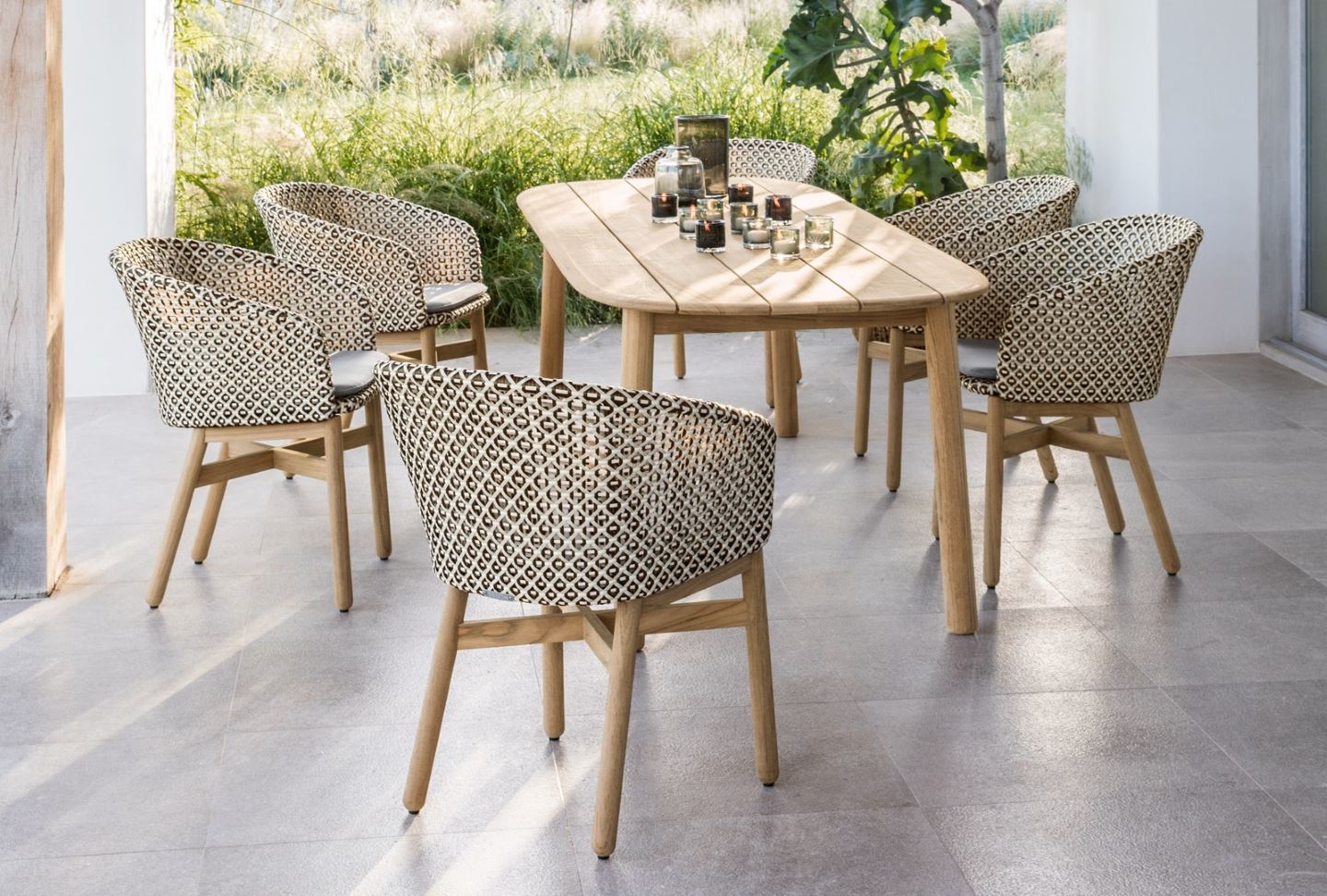 TIBBO wurde von den bekannten britischen Designern Edward Barber und Jay Osgerby für eine Zeit geschaffen, in der Lebensräume im Innen und Außenbereich zusammenwachsen. Die erste Teak-Kollektion von DEDON vereint Handwerkskunst mit überlegenem Komfort und bemerkenswerter Leichtigkeit - in einem unverkennbar eleganten und klaren Design. TIBBO umfasst Elemente für den Ess- und Lounge-Bereich. Der Mix aus Teakholz, Textilien und gewebten Fasern verleiht TIBBO seine ungewöhnlich großzügige und luxuriöse Anmutung.