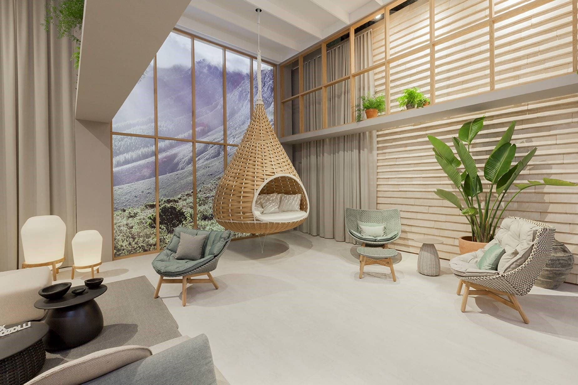 DEDON versteht sich schon immer als Plattform, um Menschen zusammen zu bringen. Diese Botschaft spiegelt auch der lange Holztisch im Herzen des Messestands wider: Ob zu zweit oder in einer Gruppe von 20 Personen, es geht um das gemeinsame Erlebnis — egal, mit wie vielen Menschen man es teilt.