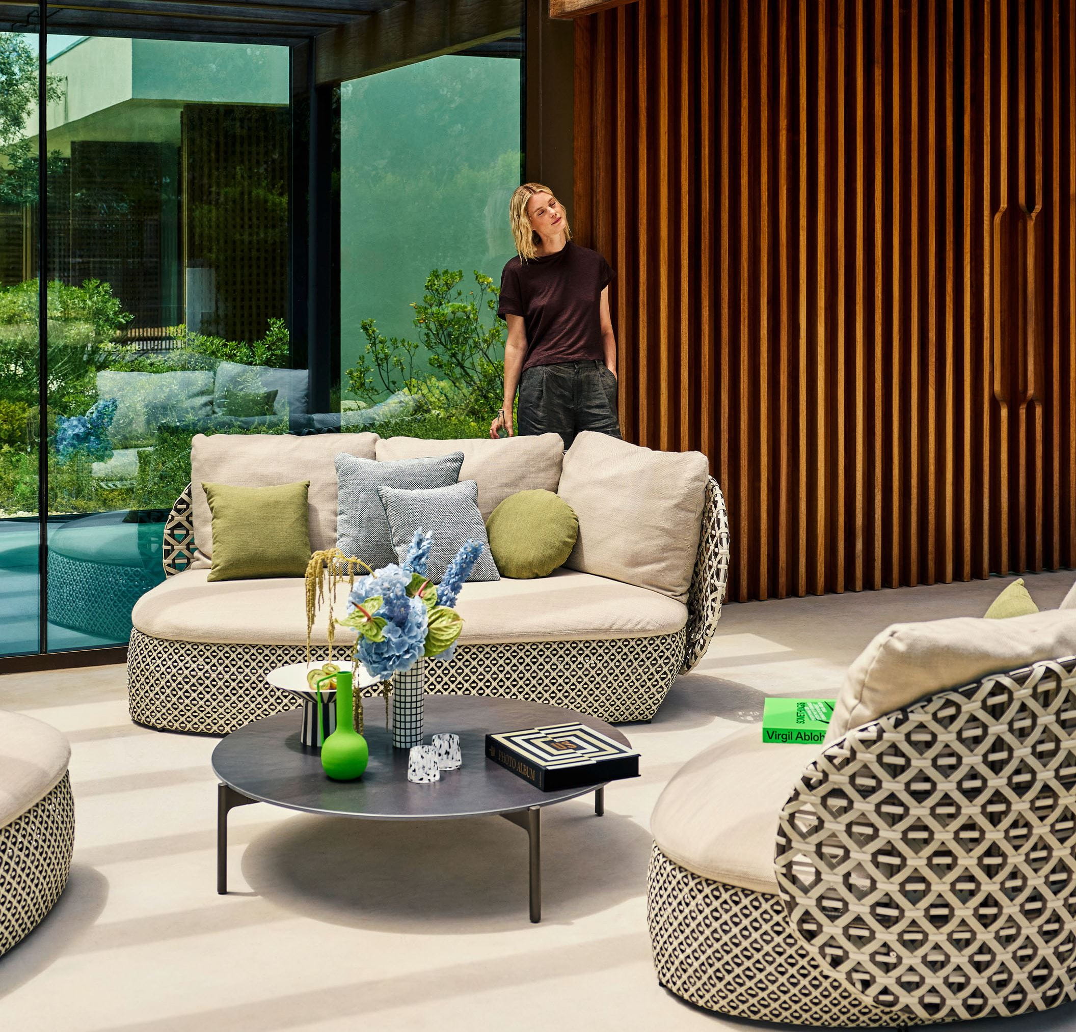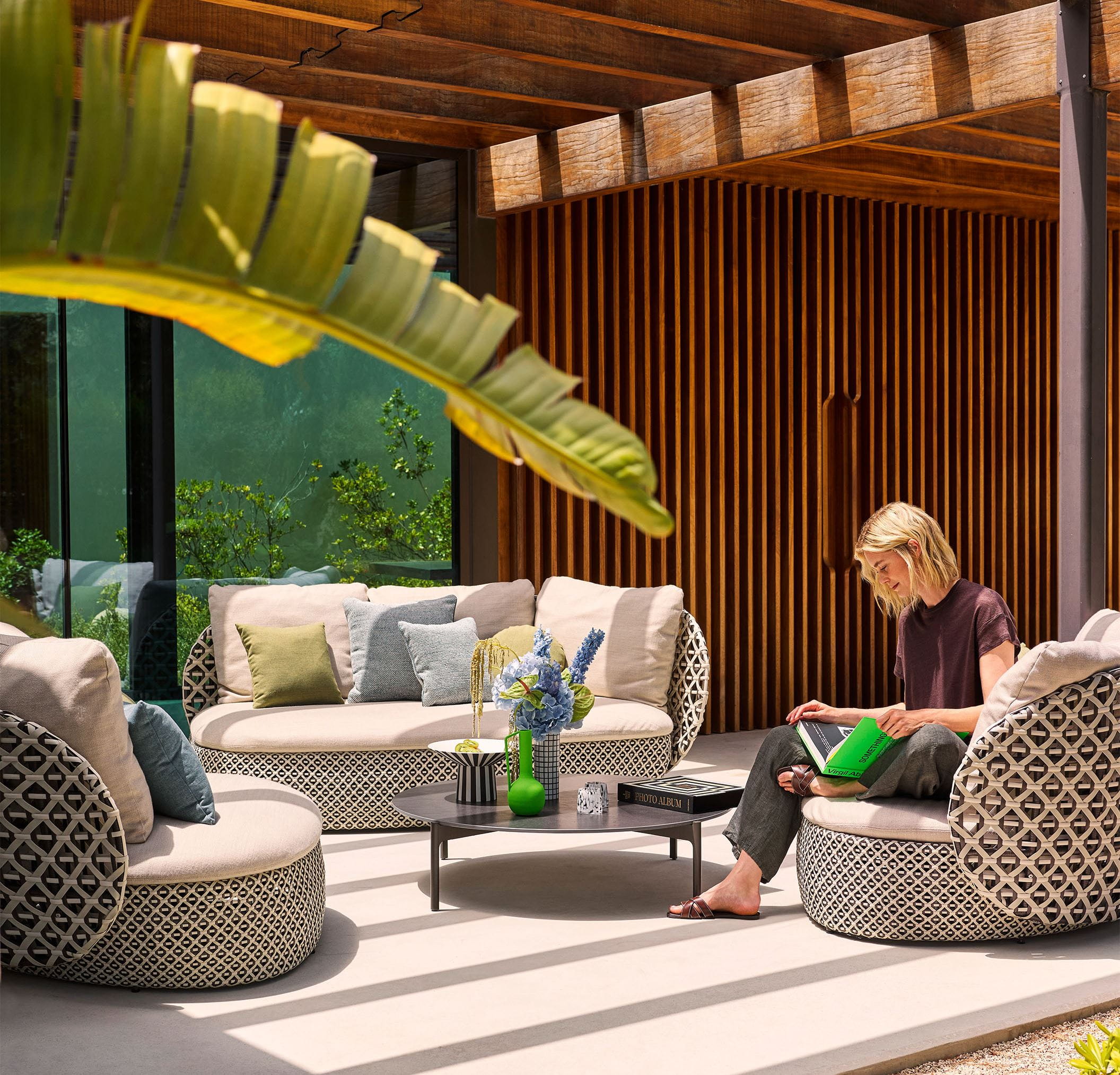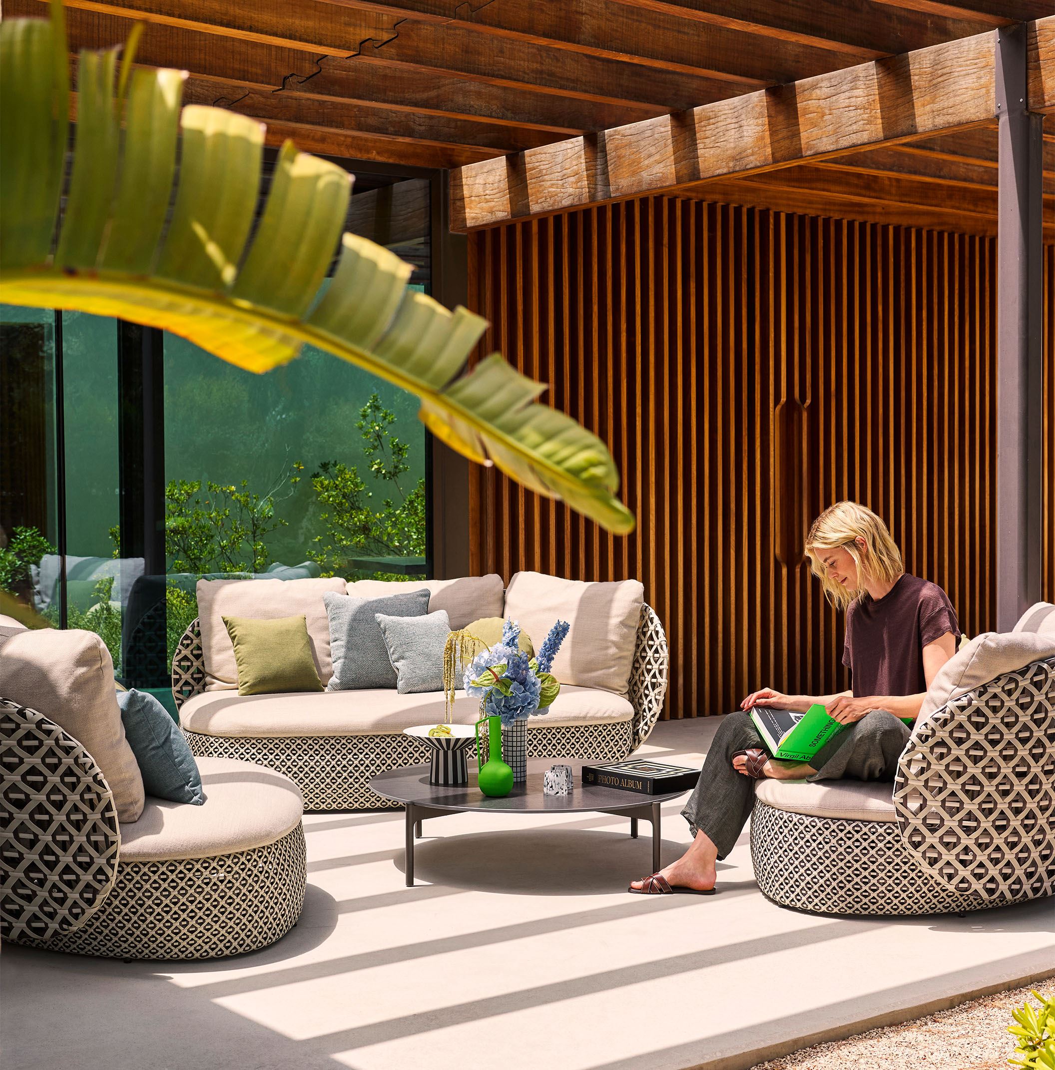 German designer Sebastian Herkner has developed a reputation for work that merges cultural contexts, combining new technologies with traditional craftsmanship in order to highlight the beauty of materials and draw attention to details. His award- winning collections for DEDON — MBRACE, MBARQ and LOON — explore all areas of outdoor design, from dining tables and chairs to lounge furniture to lighting.
