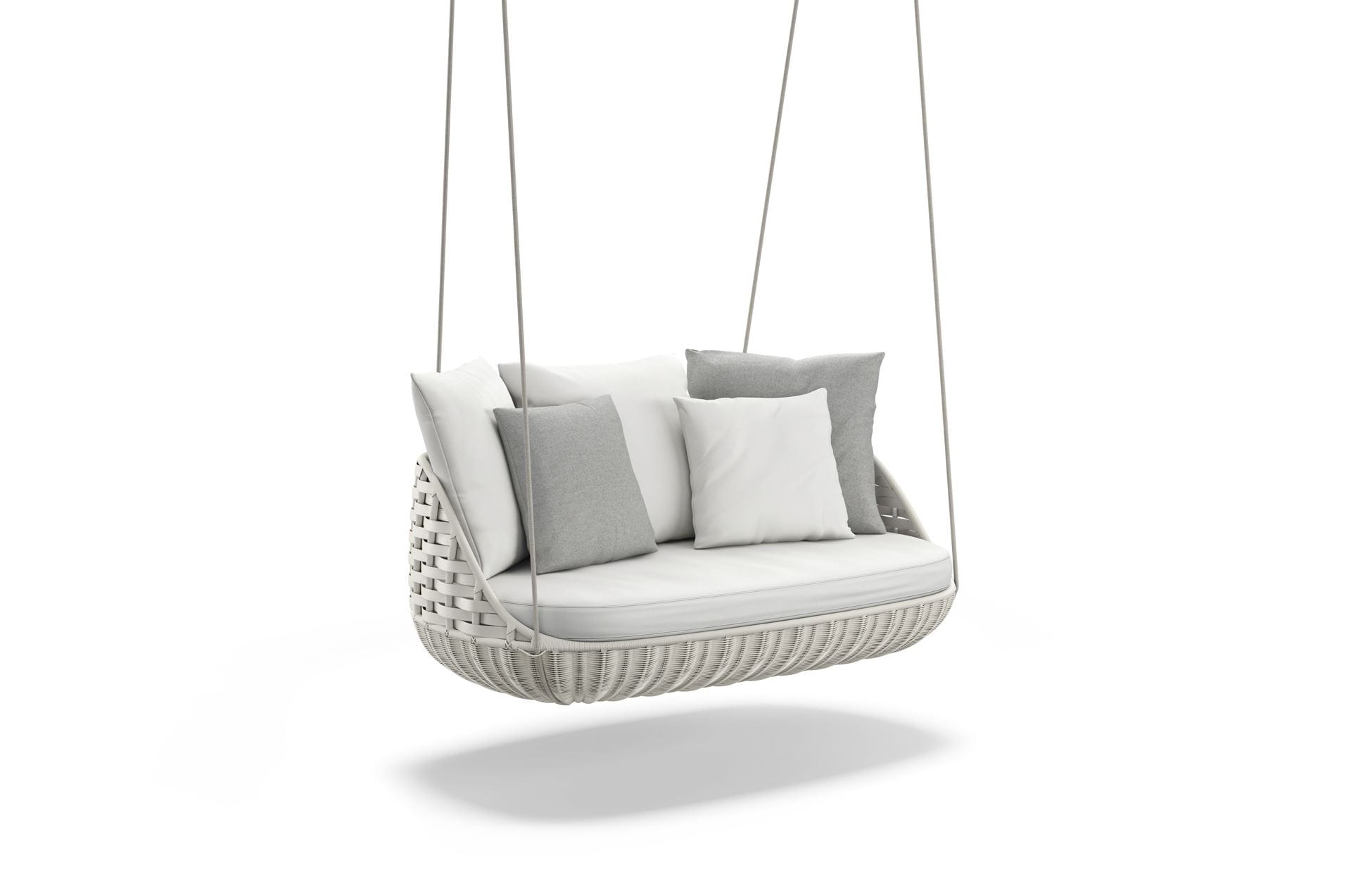 Though it shares part of its name and most of its structure with DEDON's iconic NESTREST hanging lounger, the new SWINGREST by Daniel Pouzet is in a class all its own. Borrowing the basket-like bottom from his earlier creation, the NESTREST, he has managed to create an altogether new work that feels even more spacious while seeming to take up less space. SWINGREST is now available in ‘olive,’ a new strand of DEDON Fiber ‘touch.’ Drawing inspiration from the olive fruit, long celebrated for its beauty, the new fiber has a matte surface and muted green hue hinting at leafy foliage, growth and renewal.