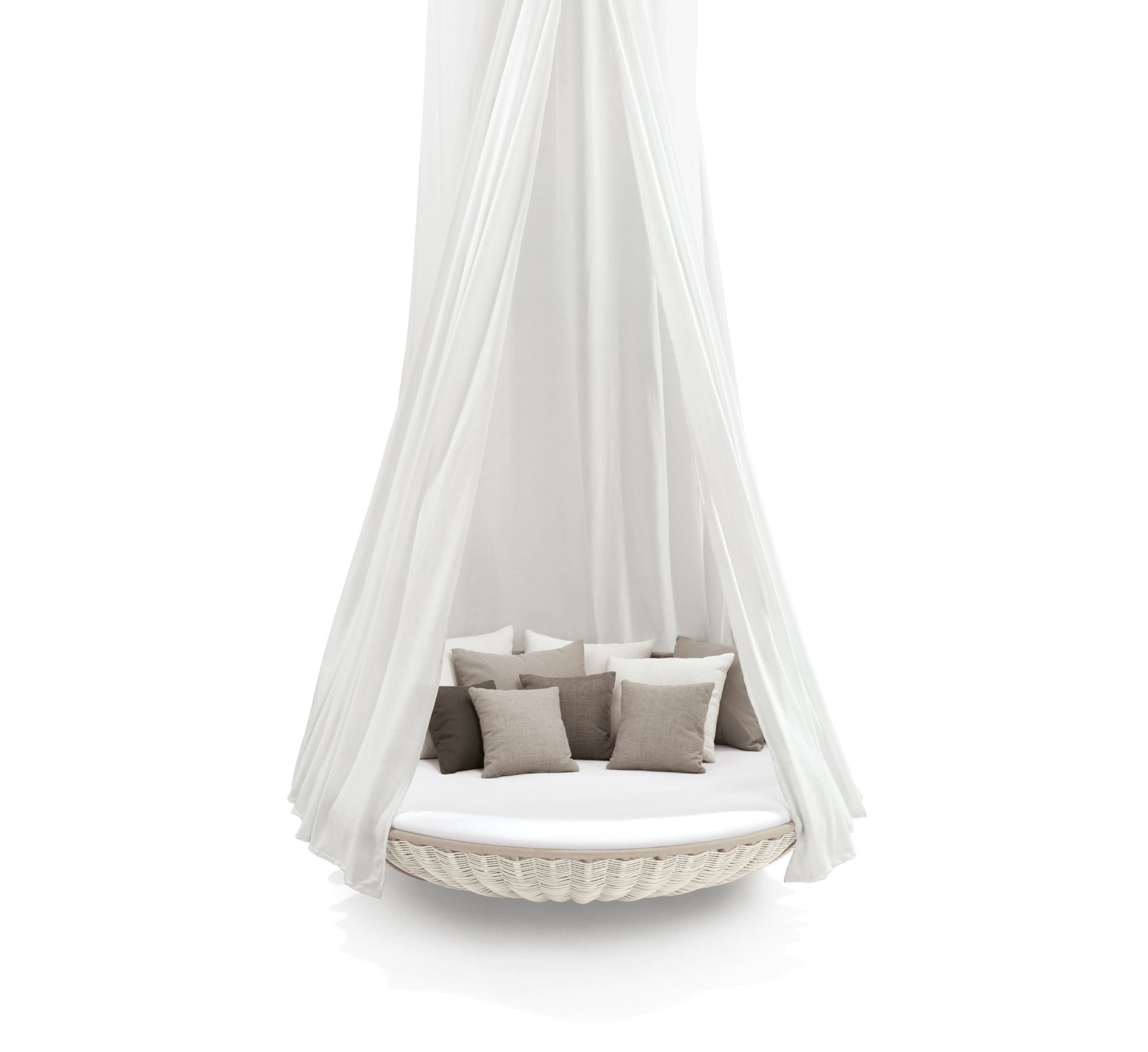 Though it shares part of its name and most of its structure with DEDON's iconic NESTREST hanging lounger, the new SWINGREST by Daniel Pouzet is in a class all its own. Borrowing the basket-like bottom from his earlier creation, the NESTREST, he has managed to create an altogether new work that feels even more spacious while seeming to take up less space. SWINGREST is now available in ‘olive,’ a new strand of DEDON Fiber ‘touch.’ Drawing inspiration from the olive fruit, long celebrated for its beauty, the new fiber has a matte surface and muted green hue hinting at leafy foliage, growth and renewal.