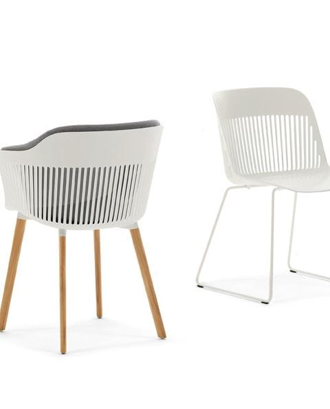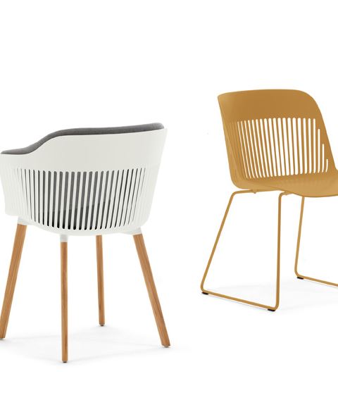 With its light and transparent design, AIIR by GamFratesi reinterprets the classic shell chair for contemporary living. DEDON’s first collection to incorporate injection-molded seating, AIIR is equally suited for use outdoors or in — and so lightweight it’s a breeze to move between the two. Available in armchair and side chair versions, both with tapered teak legs and optional seat and back cushions, the collection comes in an exclusive color palette reflecting Nordic and Italian influences.