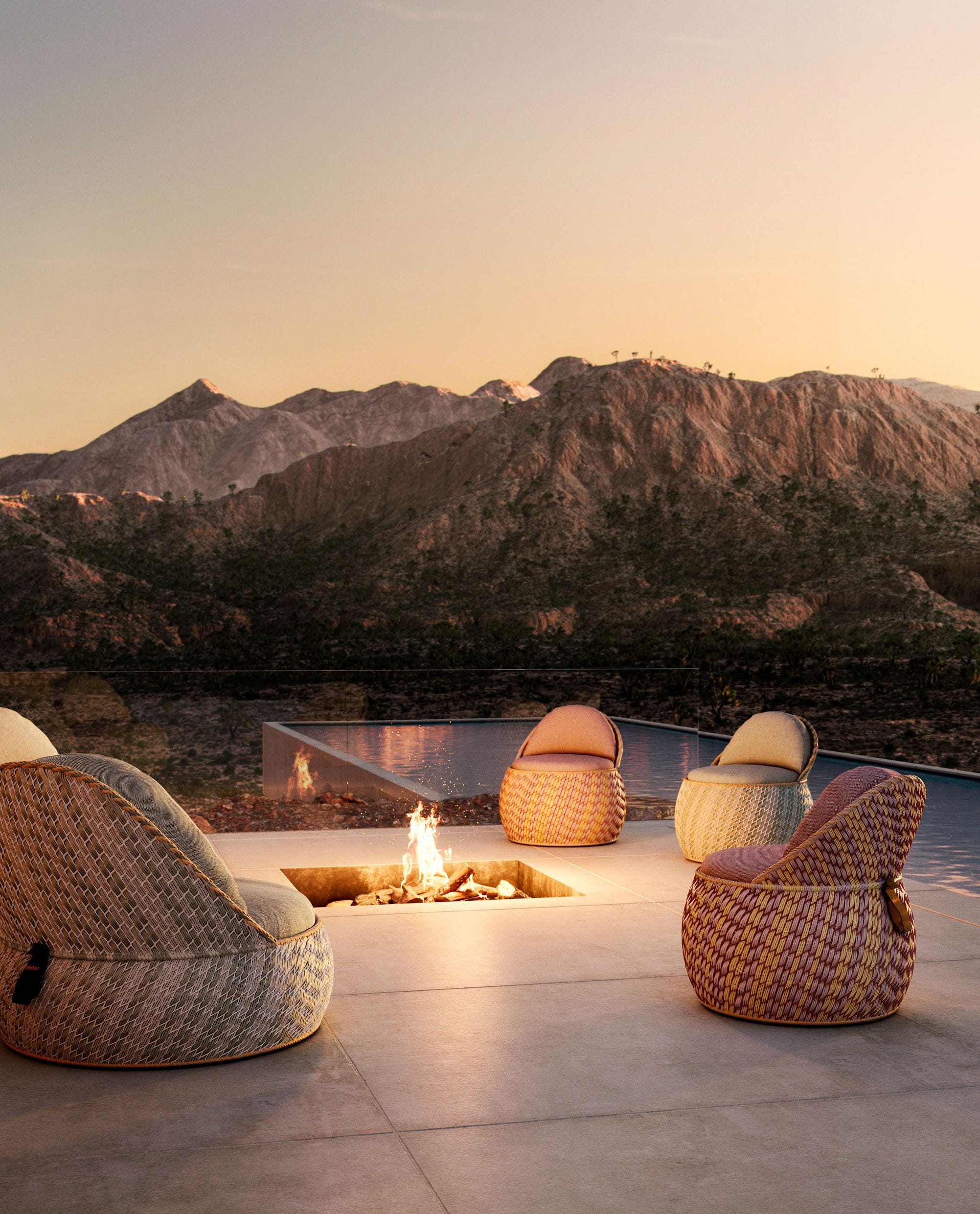Comprised of circular lounge elements, DALA is easy-going yet artisanal, characterized by a weaving style so innovative and distinctive that it has been successfully patented. New for 2021, Stephen Burks’ award-winning collection welcomes five new colorways—rioja, cuba, bahamas, ubud, and ibiza—inspired by DEDON’s ongoing Tour du Monde, in addition to a club chair and plush new seating cushions. The exciting color palette, developed with renowned colorist Giulio Ridolfo, features signature DEDON tones in inspiring new combinations. The colors are available for the whole DALA range, from planter to lantern, footstool to lounge chair, and will replace the current offering.