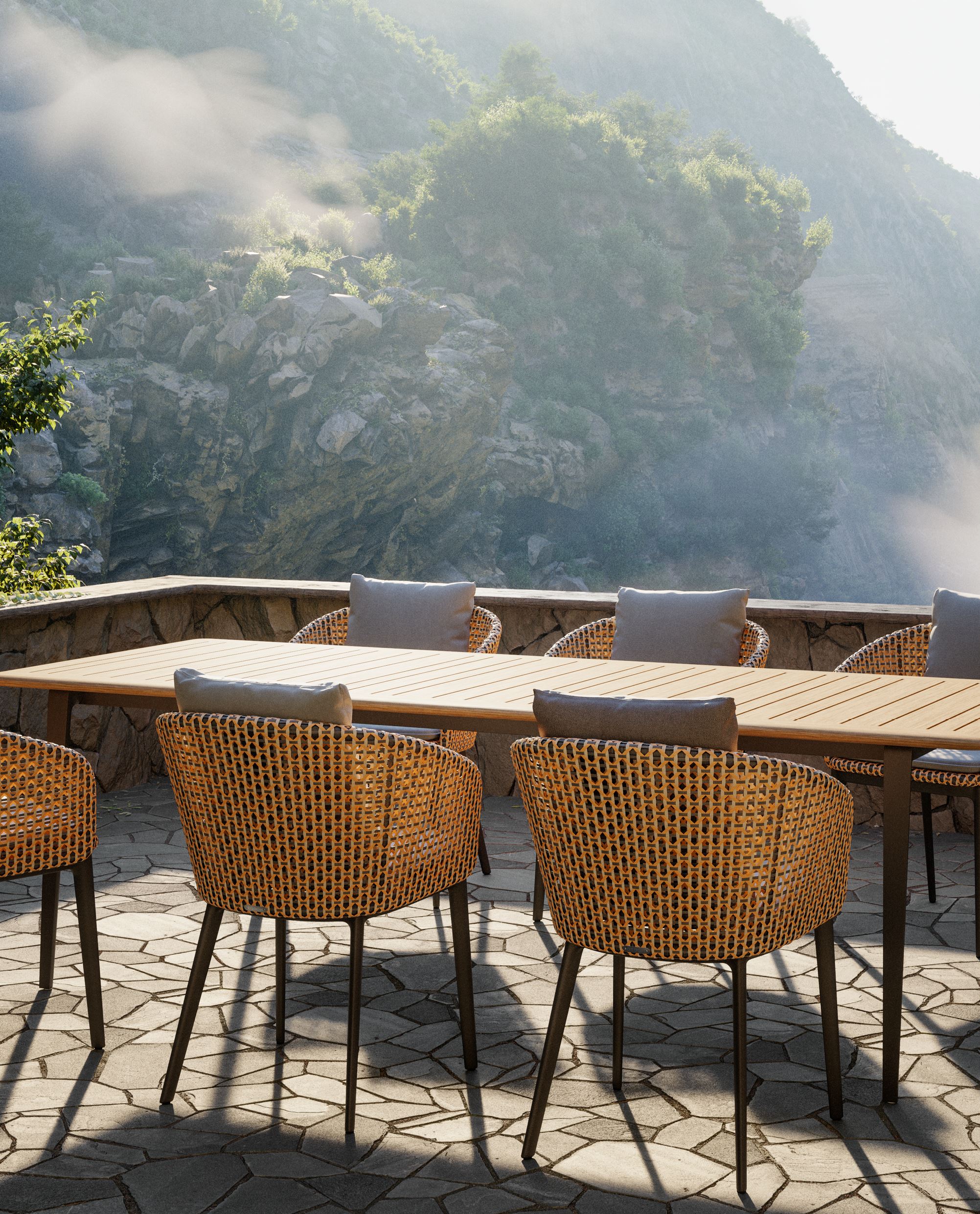 Easy elegance meets contemporary ease in BELLMONDE by Henrik Pedersen. Designed to encourage relaxation, this warm and welcoming collection is characterized by soft organic forms and an innovative new textured weave. New armchairs and a reimagined lounge chair join the versatile BELLMONDE table to form a larger ensemble that’s ideal for bringing people together for dining, conversing or simply lounging in style, whether by sunshine or starlight.