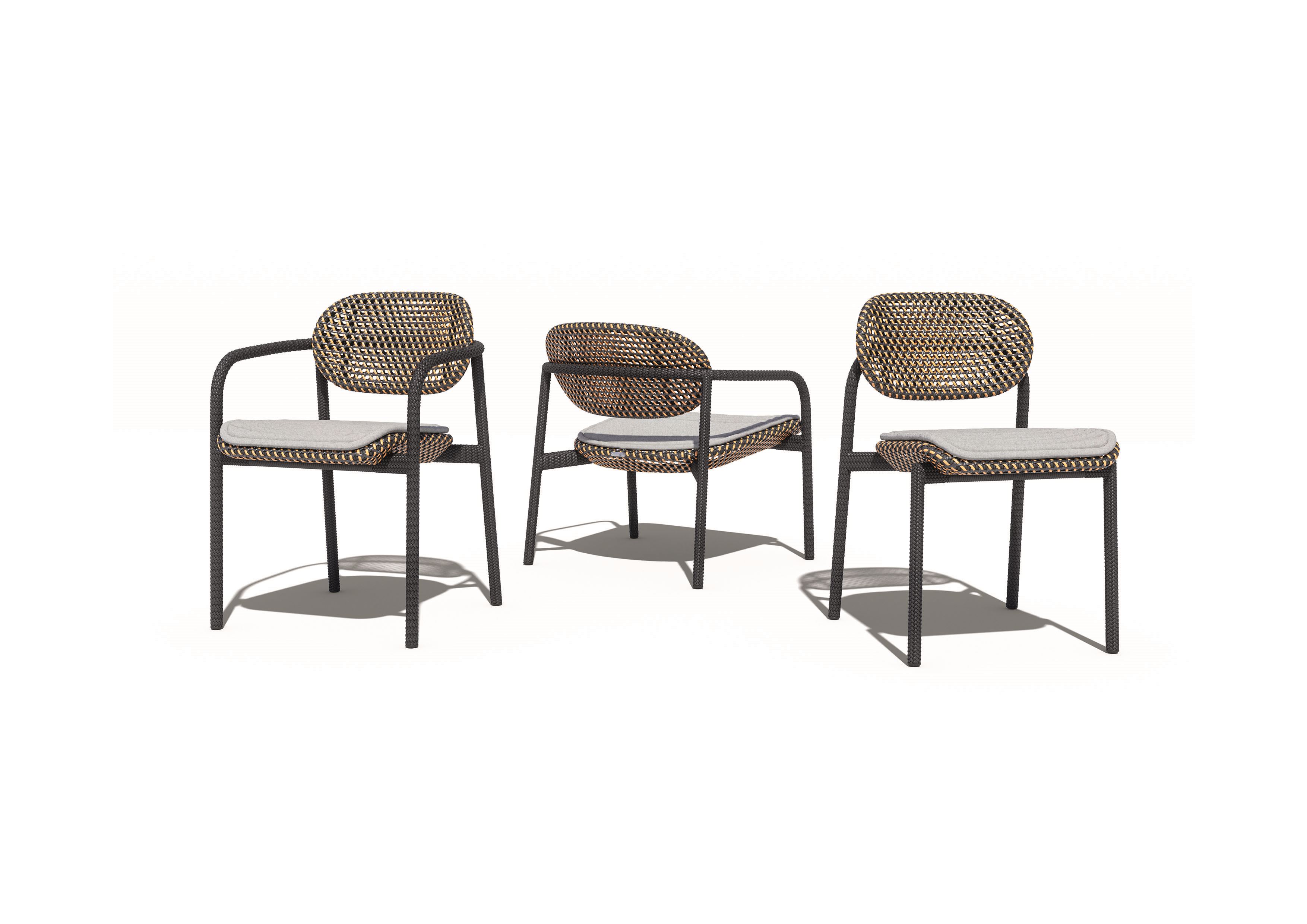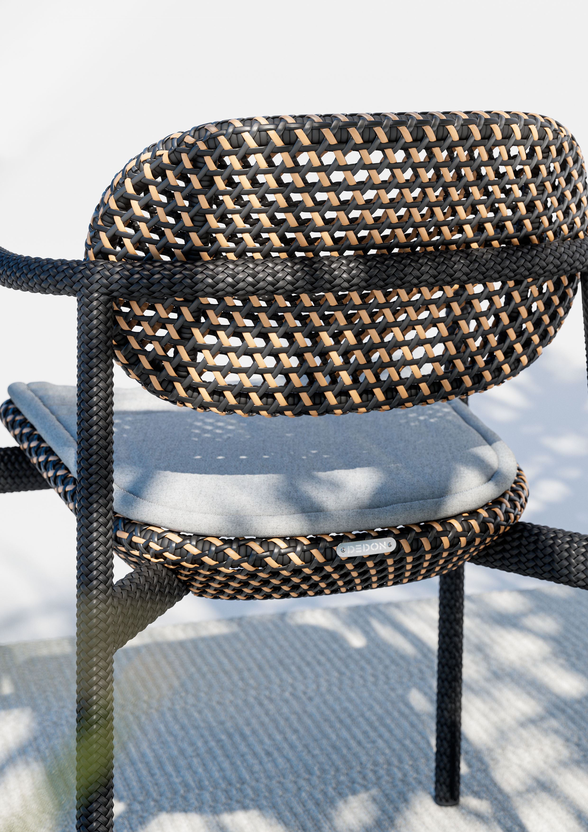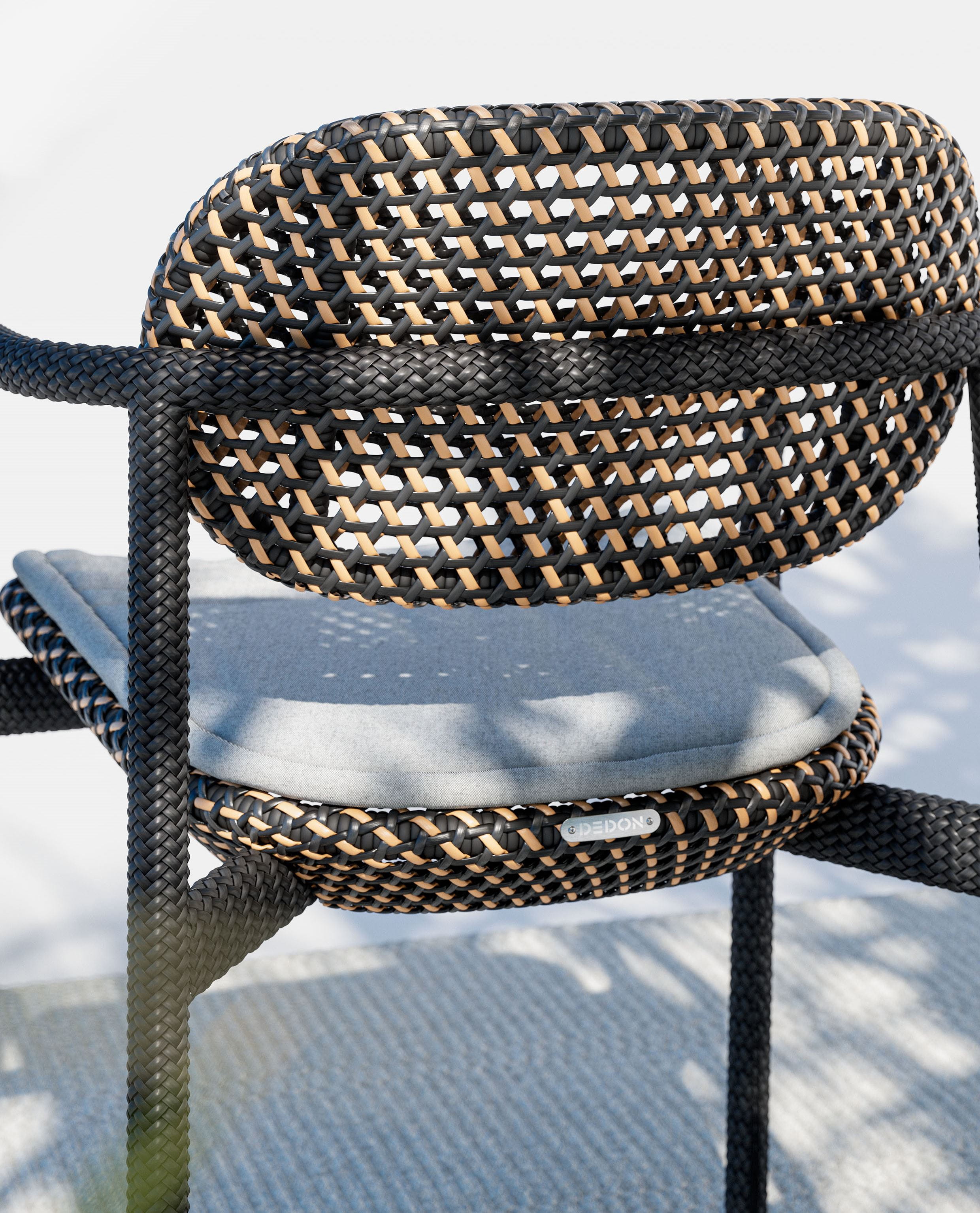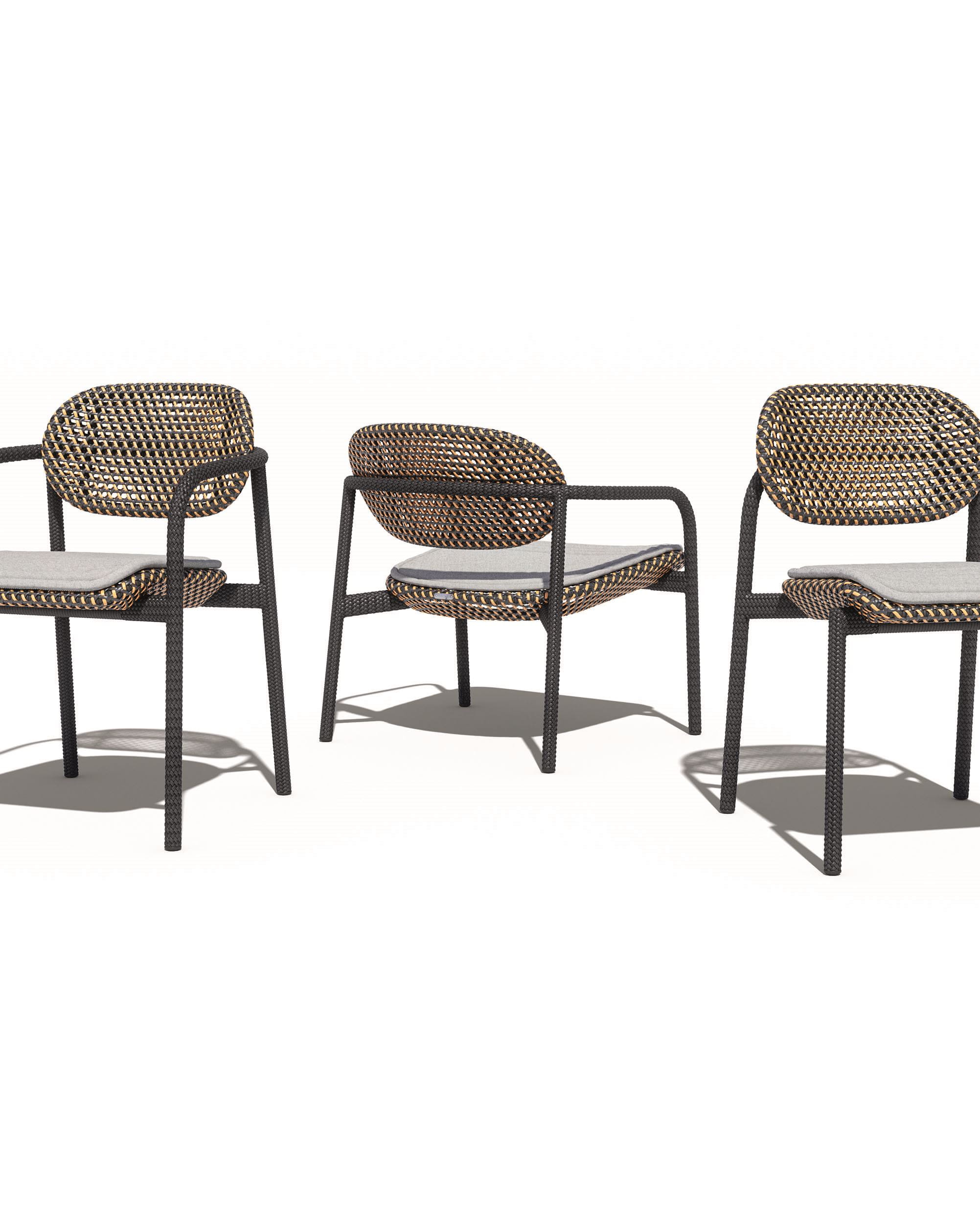 ROII by Benjamin Baum is a contemporary expression of pure DEDON DNA. This fully woven collection encompasses side chairs, armchairs and a comfortable lounge chair, combined in two distinct weaving styles and an eye-catching mix of colors, textures and patterns. Compact yet comfortable, ROII is equally at home atop a beach dune, on an ur-ban balcony, or poolside amidst a full array of DEDON furniture. Lightweight, stackable and easy to move around, ROII is there when you need, bringing people together for con-versations all day long and deep into the night.