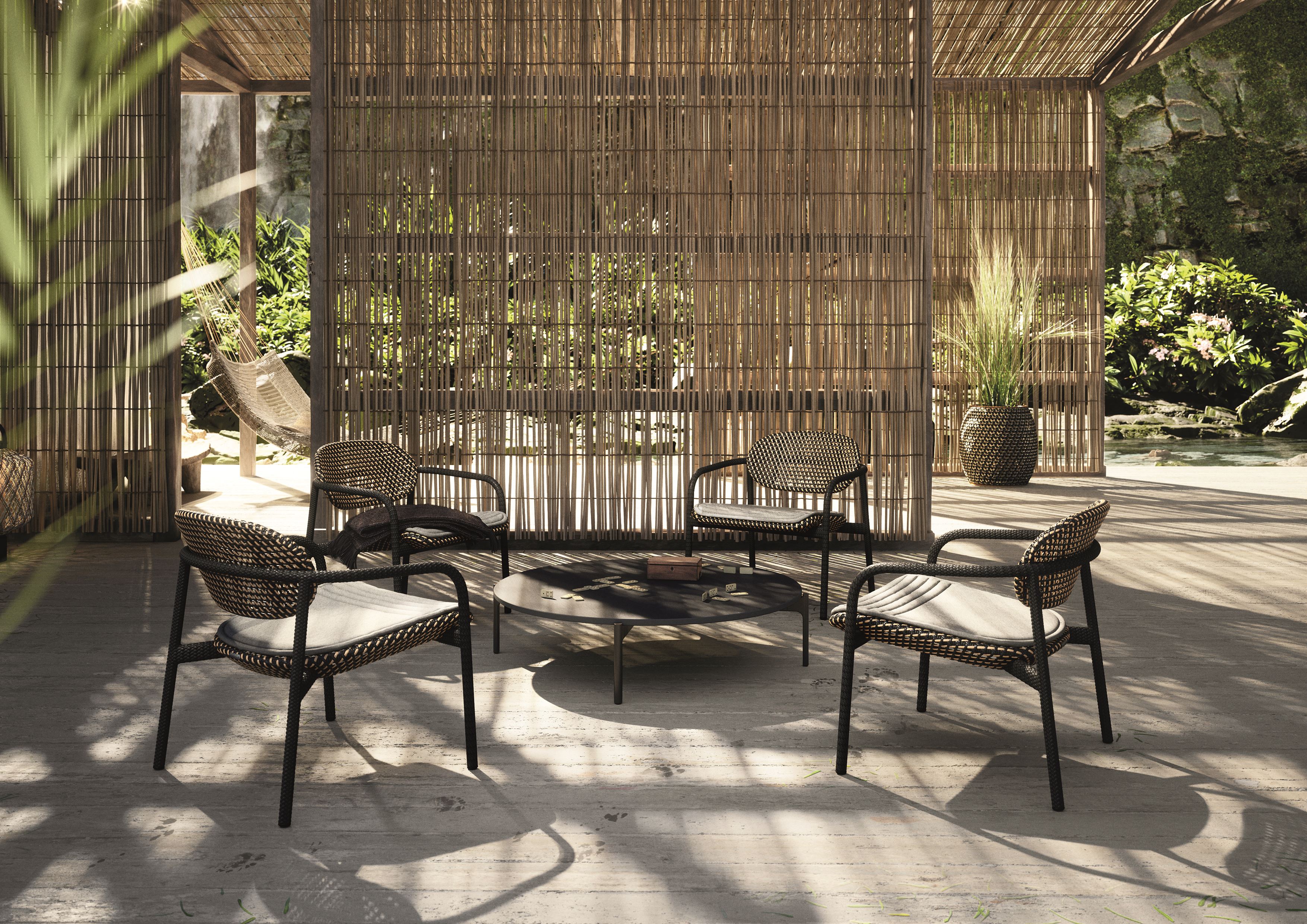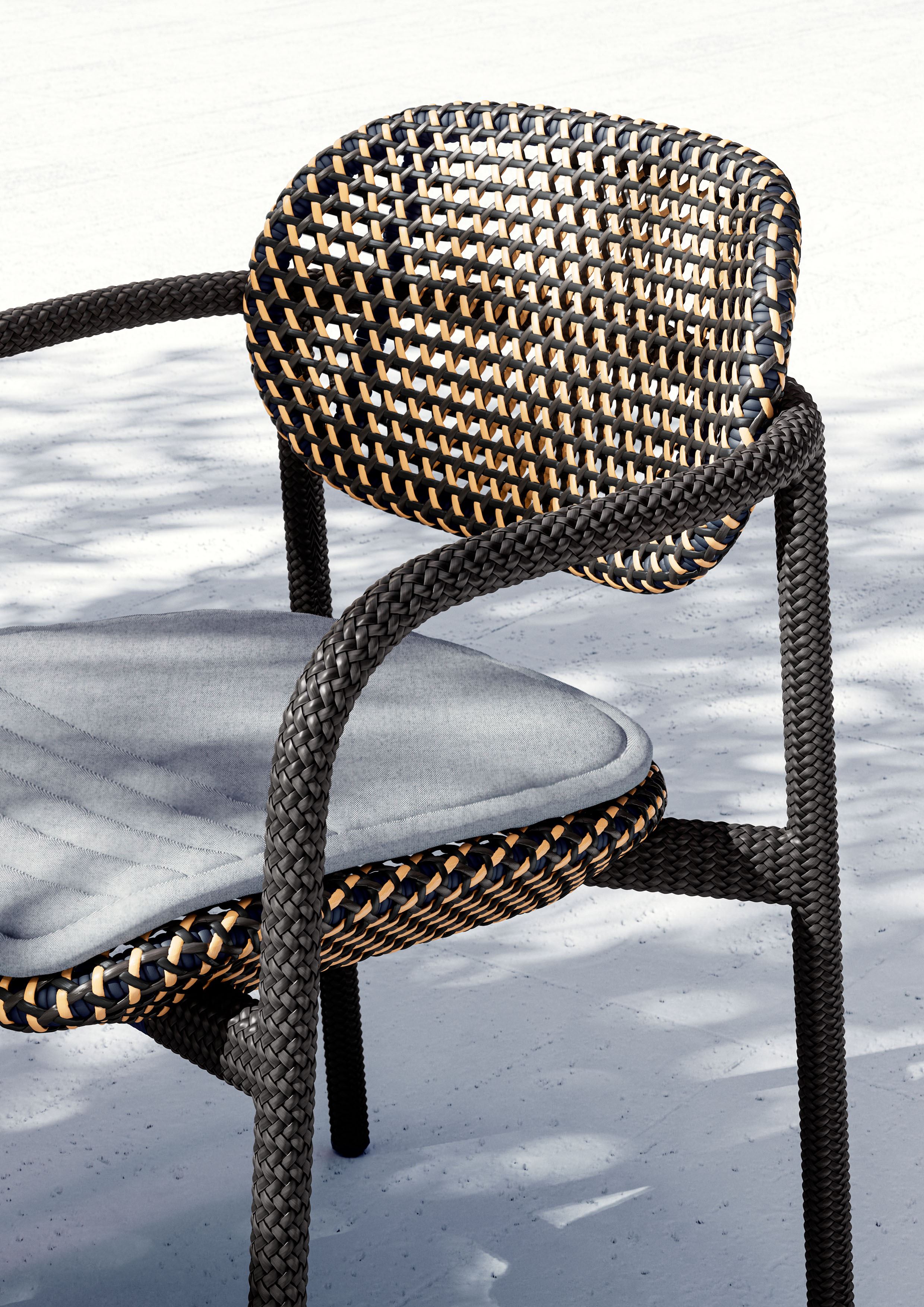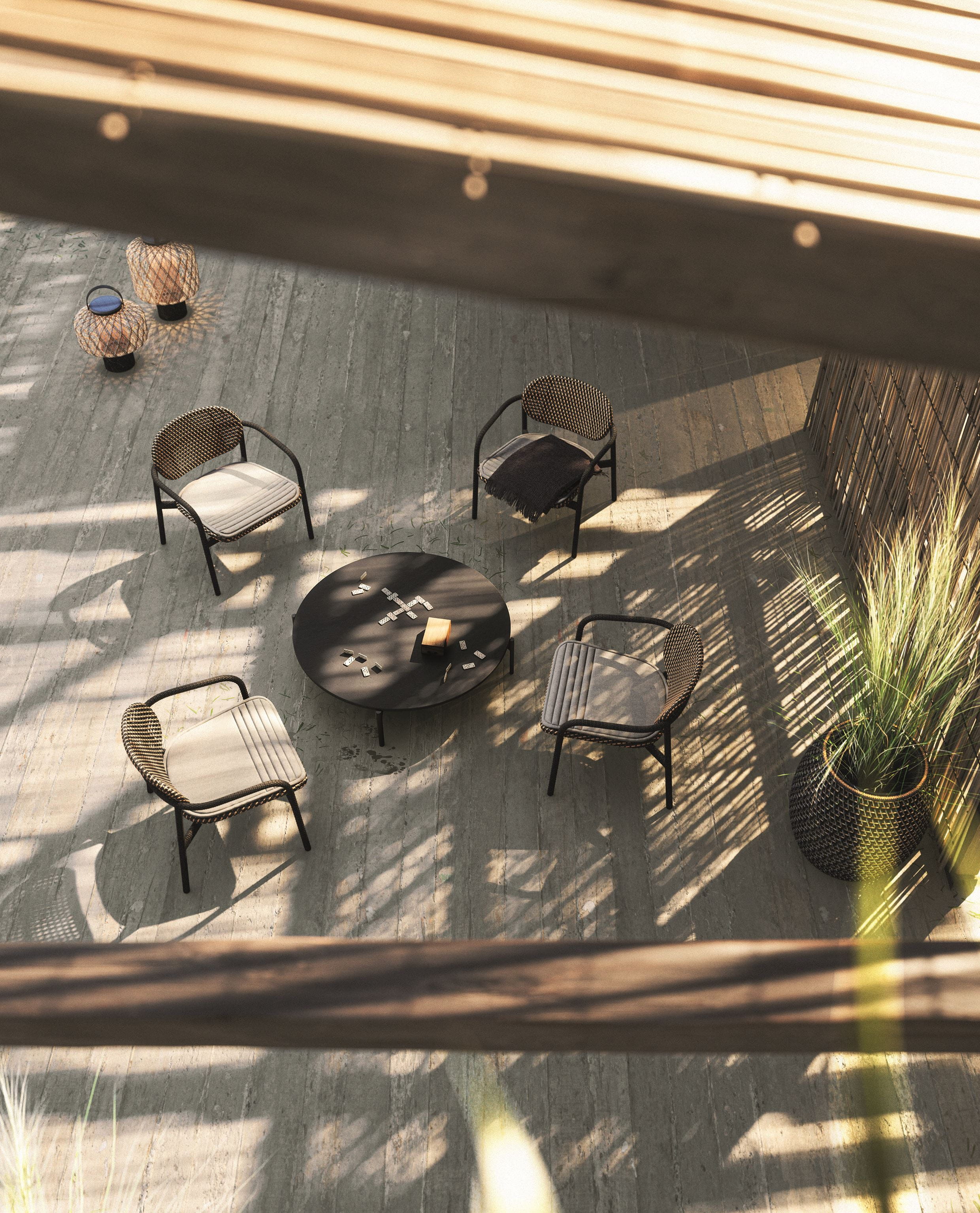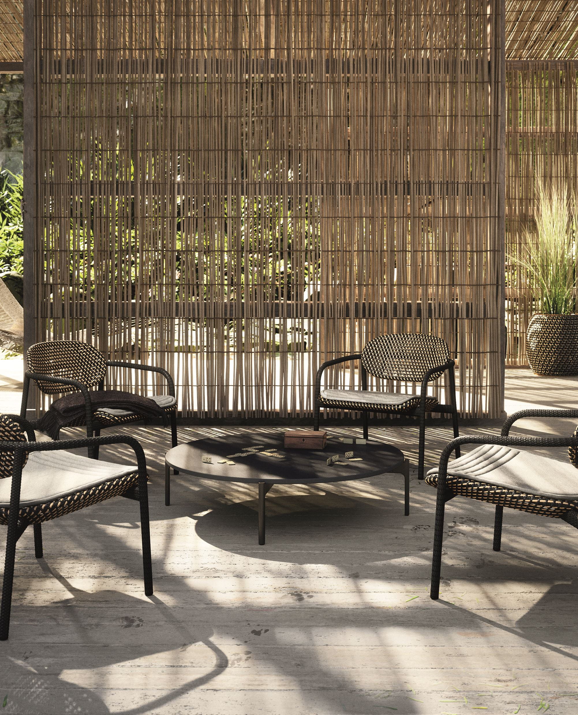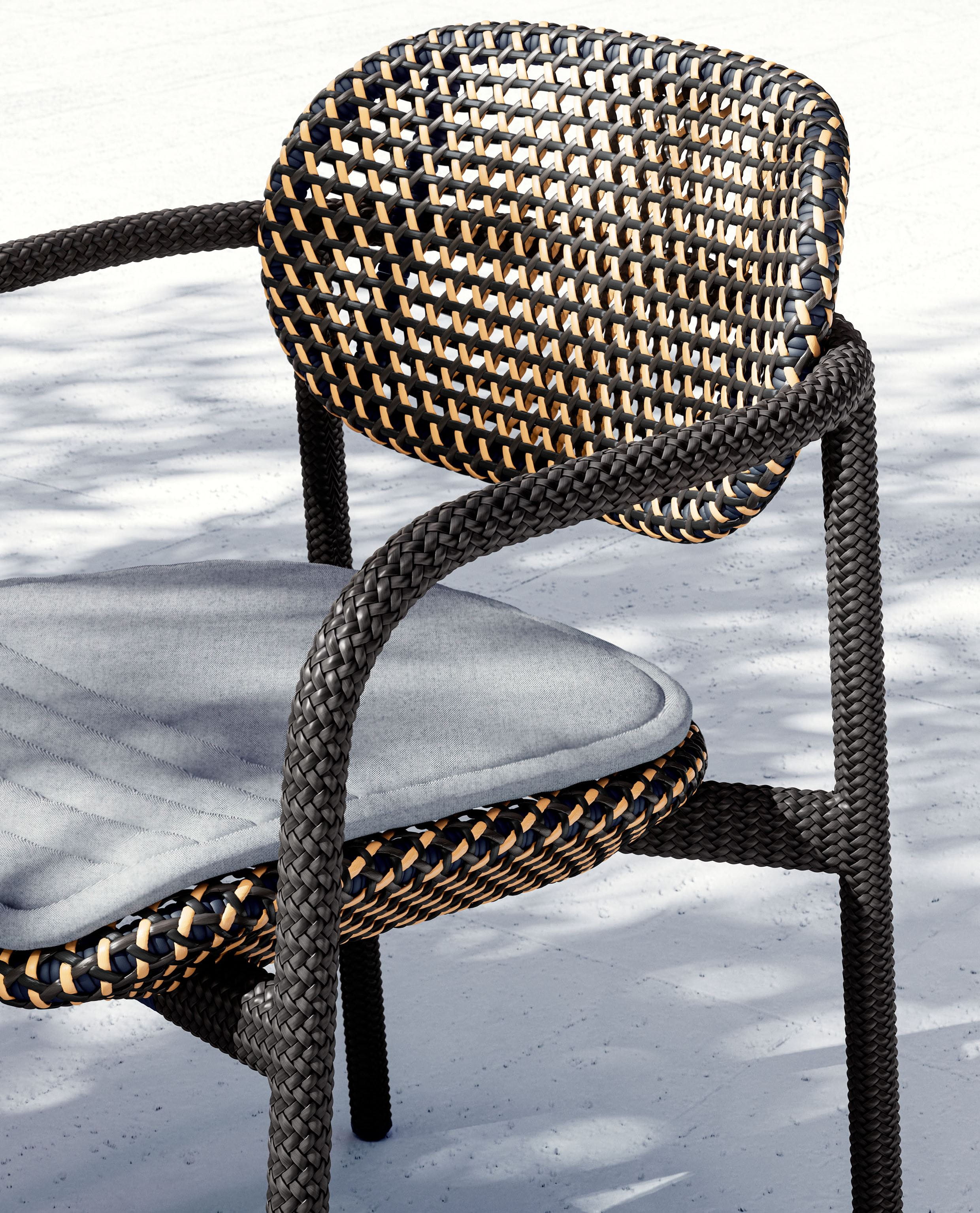 ROII by Benjamin Baum is a contemporary expression of pure DEDON DNA. This fully woven collection encompasses side chairs, armchairs and a comfortable lounge chair, combined in two distinct weaving styles and an eye-catching mix of colors, textures and patterns. Compact yet comfortable, ROII is equally at home atop a beach dune, on an ur-ban balcony, or poolside amidst a full array of DEDON furniture. Lightweight, stackable and easy to move around, ROII is there when you need, bringing people together for con-versations all day long and deep into the night.
