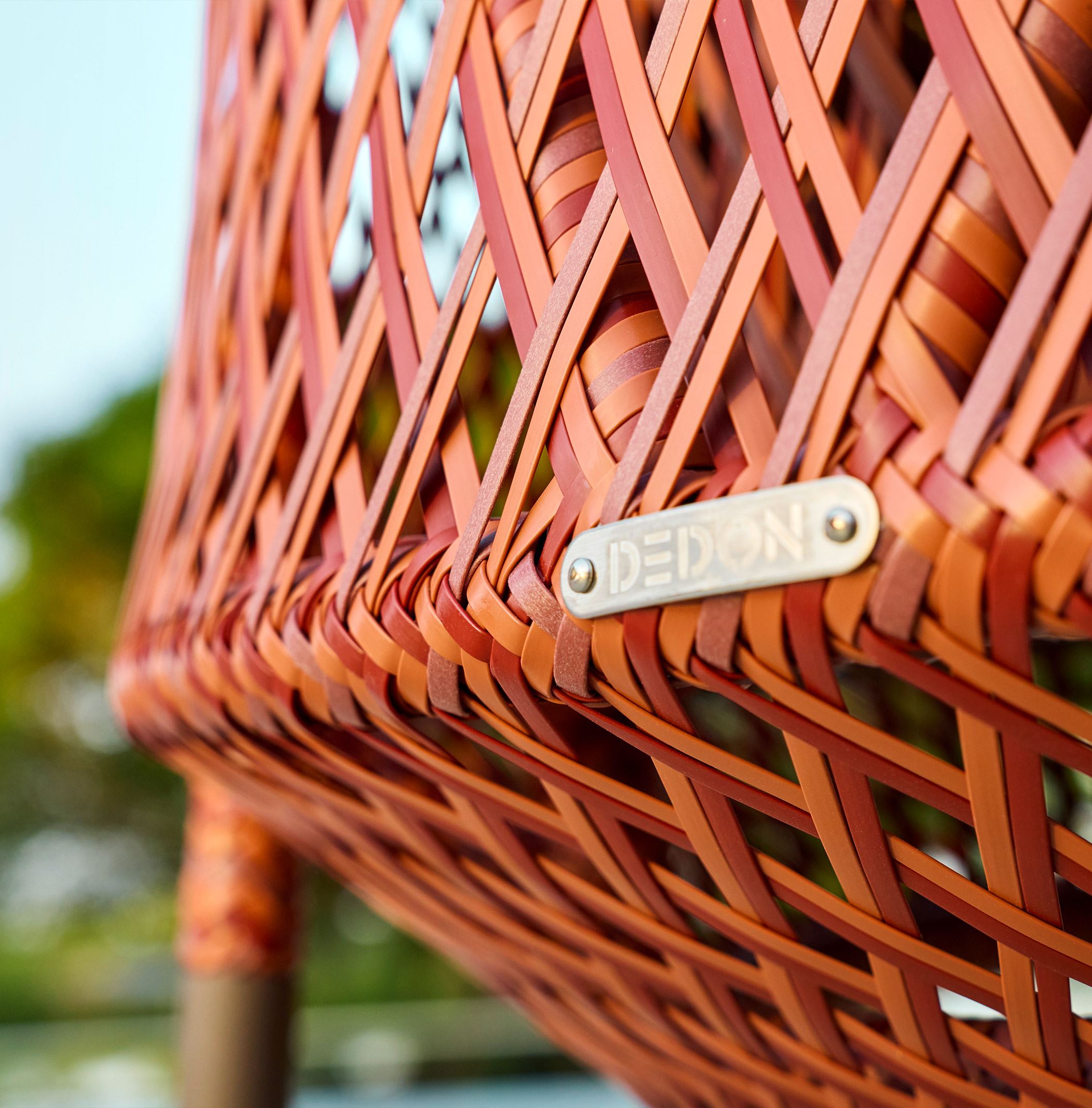 To clean the surface of your furniture woven with DEDON Fiber, use a soft cloth or brush, warm water and a gentle cleanser if needed. Use the DEDON Fiber, teak & upholstery cleaner to remove dirt and stains. Alcohol and other solvents are not suitable for cleaning because they can damage or discolor the surface being cleaned.