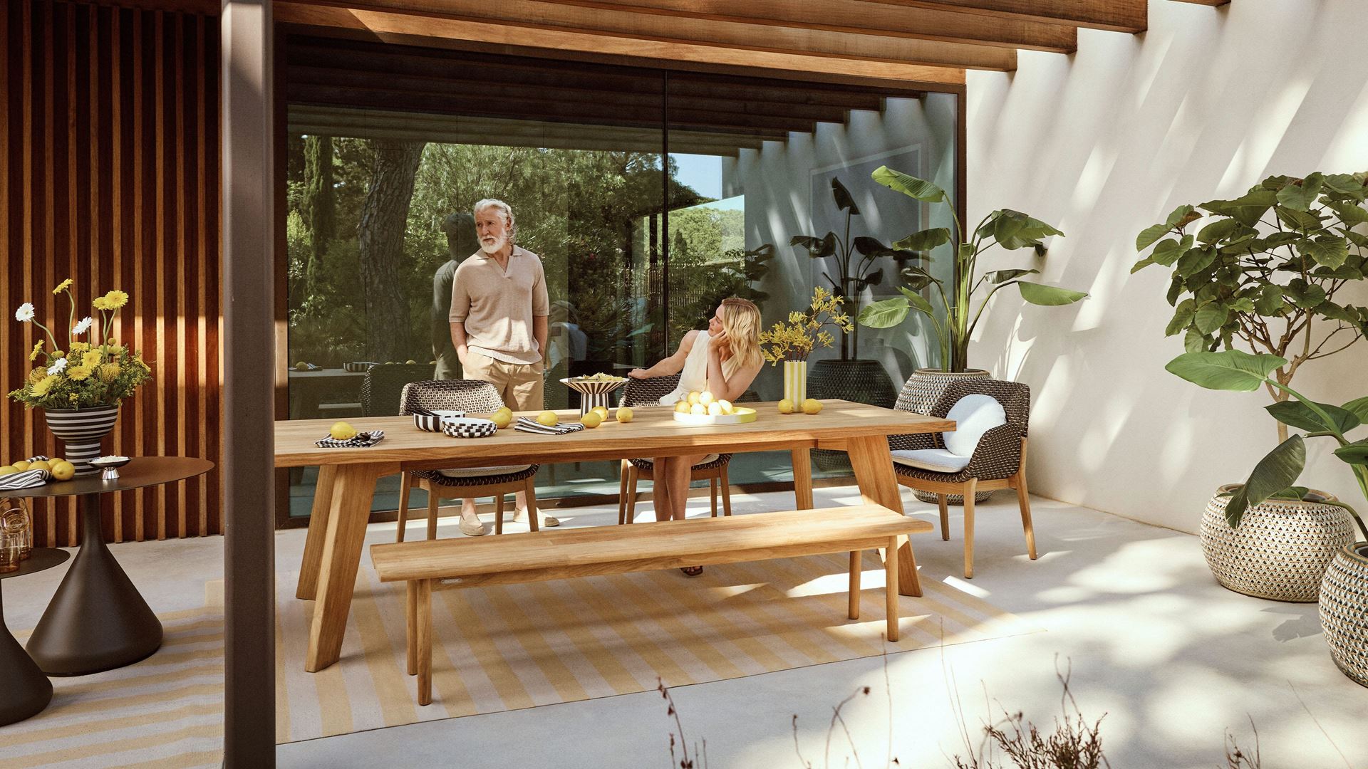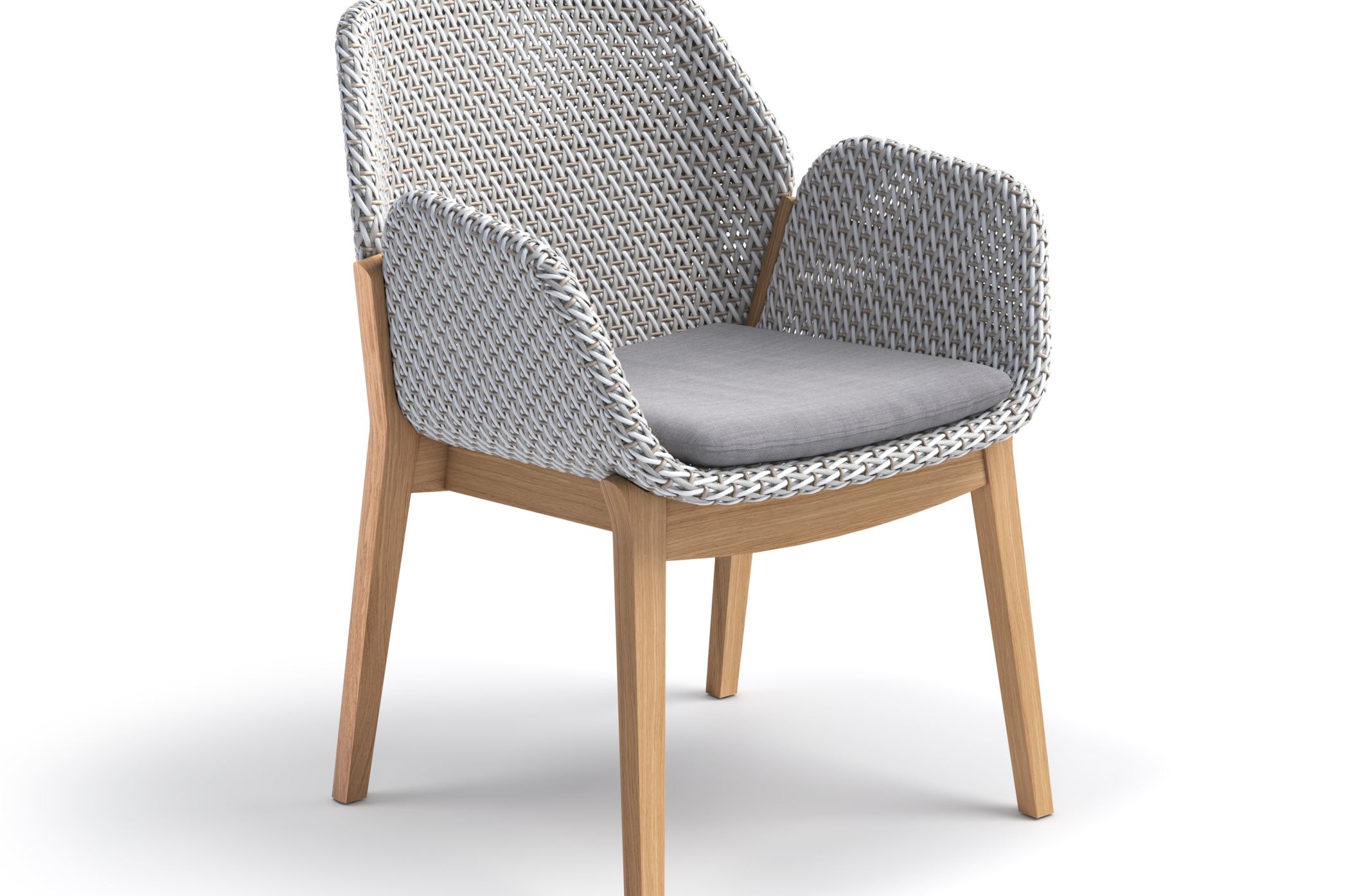 Effortlessly comfortable with or without a cushion, CALADIO draws inspiration from the caladium — also known as elephant ear — an exotic Indonesian plant admired for its lush, sculptural leaves. Its flowing silhouette and organic curves evoke a sense of harmony — making it a natural fit for a spacious balcony, sun-drenched terrace, or serene garden retreat. “The combination of handwoven DEDON Fiber in rich color variations with a superior wooden frame gives CALADIO its signature warmth and sophistication.”, Kahleyss notes.
