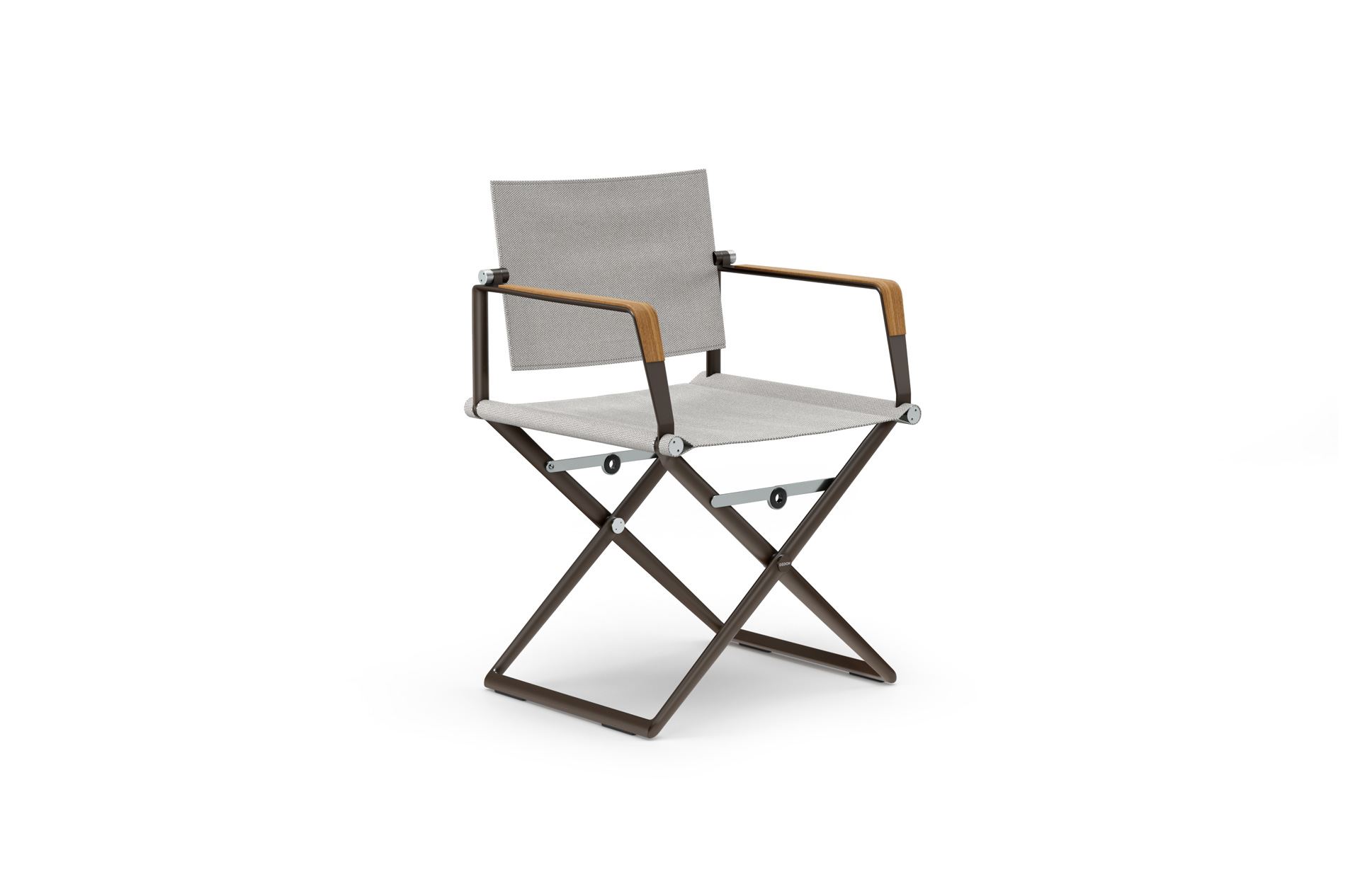 Precision-engineered to lock into place, SEAX’s lightweight yet sturdy aluminum frames close with ease at the press of a button. The chairs are distinguished by beautiful stainless-steel detailing, a special powder coating in a choice of powder-coated 'black pepper' or 'lipari' to resist scuffs, and a swiveling back for extra comfort. Armrests are covered in richly-hued, teak-finished marine plywood for added visual and tactile warmth.