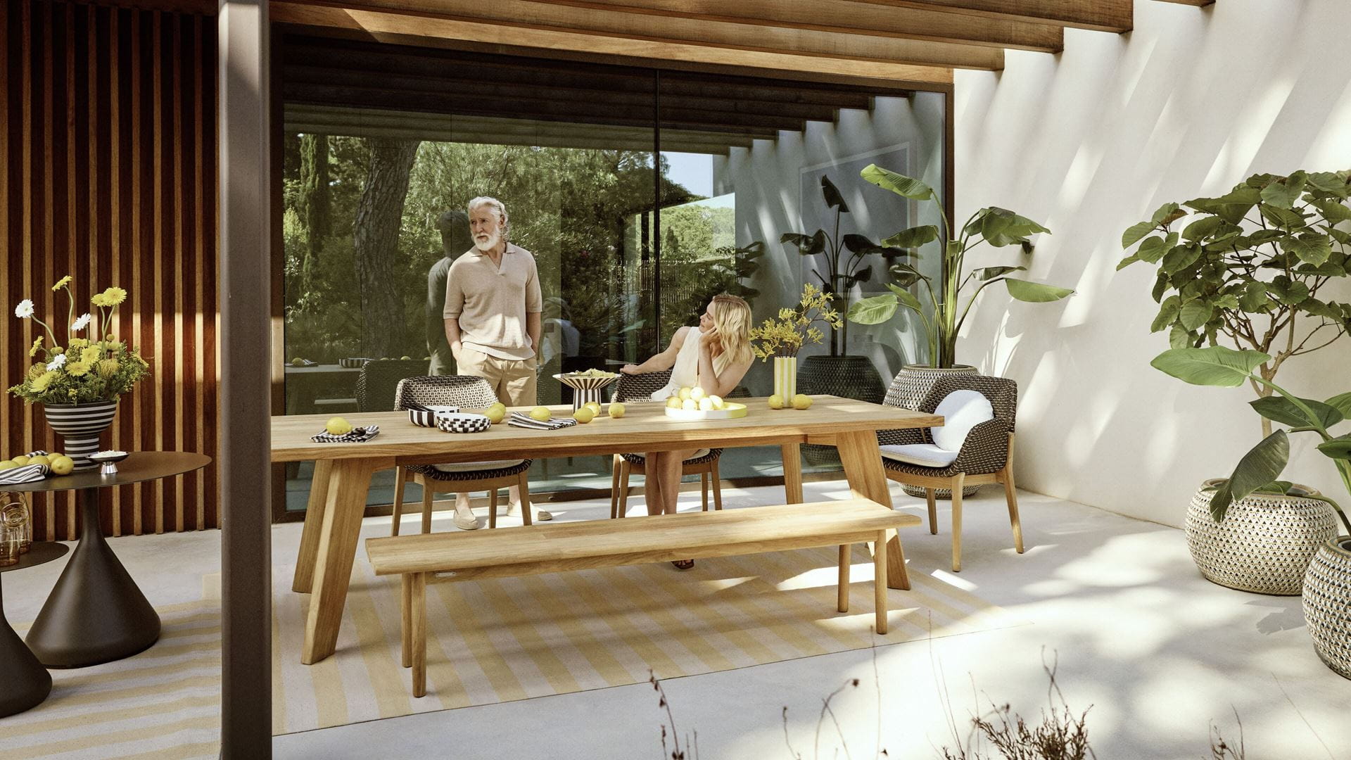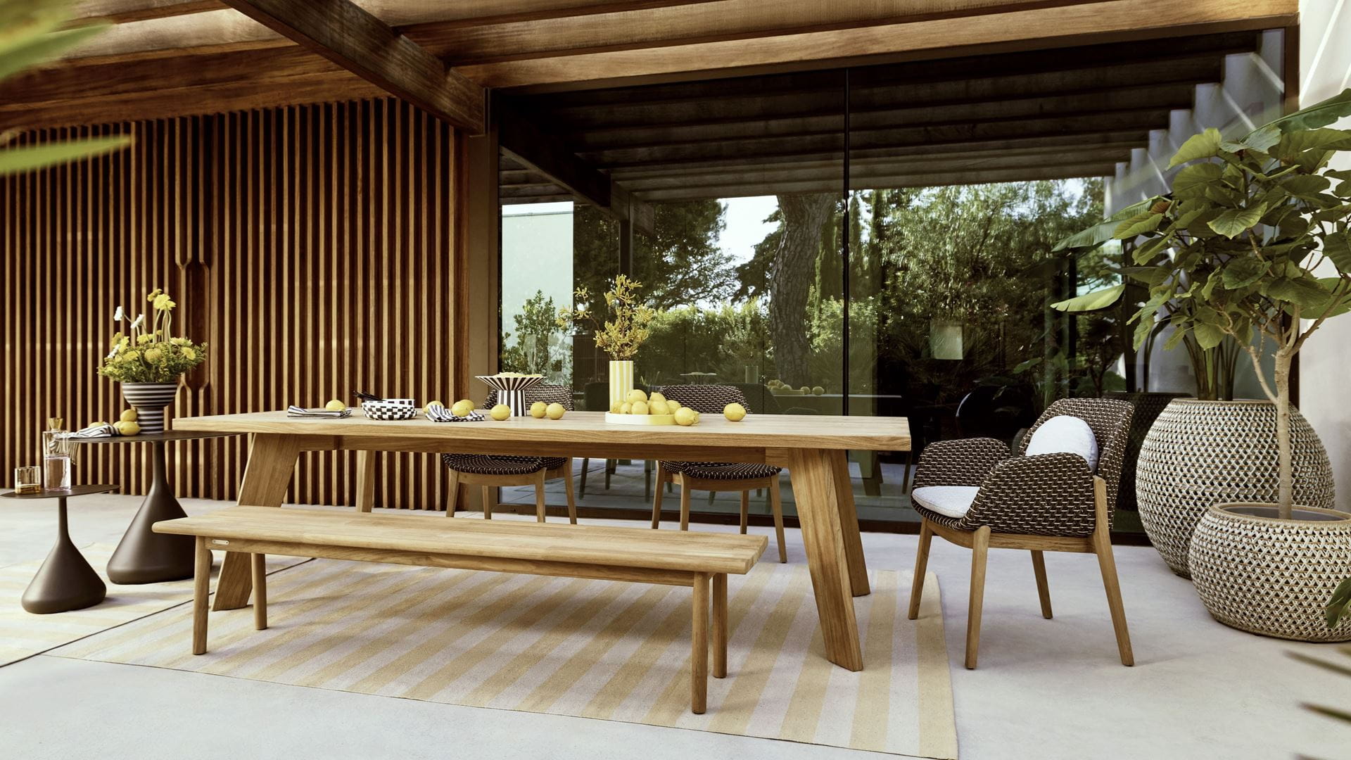 A Table for Gathering and Connection. Whether serving as a dining table, workspace, or social hub, SOYLD’s generous proportions and expansive surface ensures ample space for connection, setting the stage for shared moments, conversation, and lasting memories. The smooth, inviting teak contrasts beautifully with the woven texture of any DEDON chair, enhancing the overall tactile experience while adding warmth and comfort.