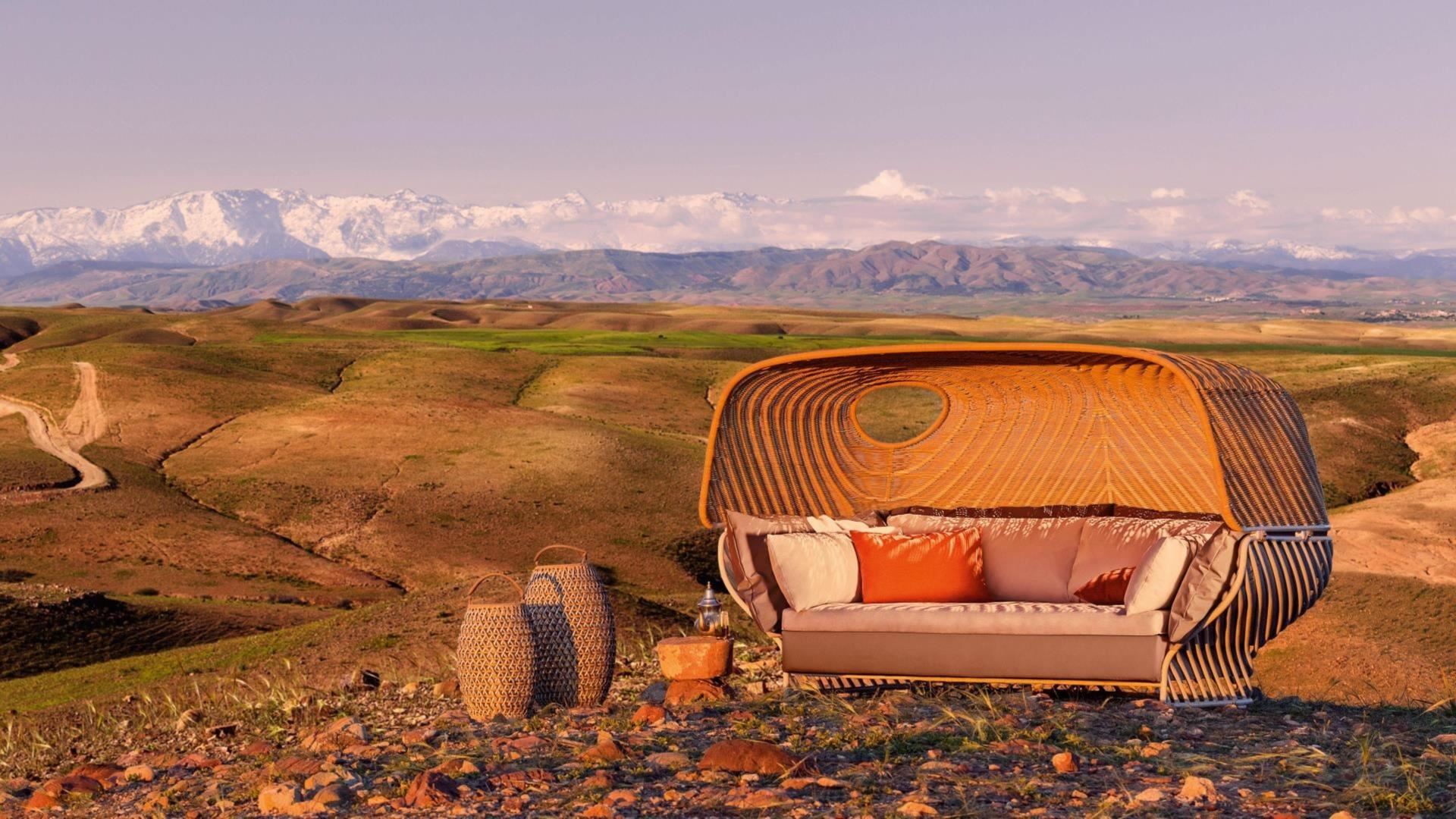Hand-woven by DEDON’s master weavers in an open, semi-transparent style, TIGMI’s easy-to-remove roof evokes the improvised, thatched palm covering of a palapa or beach hut. As light and shadows play across the interior, users are transported to a holiday state of mind, as if gathered together at the beach bar of a rustic resort. Enclosed on three sides, TIGMI establishes a shared viewpoint that reinforces this communal experience, perfectly fulfilling DEDON’s mission of bringing people together to enjoy life outdoors.